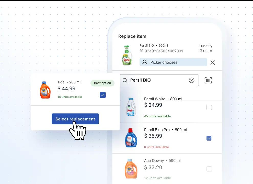 Sincroniza tareas para gestionar de manera efectiva las operaciones de tienda y aumentar la productividad del equipo logístico. Sustituye, rechaza o agrega productos a los pedidos fácilmente con nuestra herramienta intuitiva.